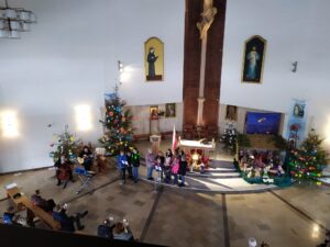 Hej kolęda, kolęda! Czas Bożego Narodzenia trwa. W naszej parafii radośnie świętujemy Narodzenie Zbawiciela. Zanim wybrzmi liturgia Ofiarowania Pańskiego, czyli w polskiej tradycji Święto Matki Bożej Gromnicznej, nieustannie śpiewamy Panu Jezusowi kolędy. Jak wiemy, kolędy, są to pieśni stylizowane na tradycyjne kołysanki śpiewane przez mamy swoim zasypiającym dzieciom. Znane nam kolędy mają też wyraźne akcenty hymnów.