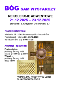 Zapraszamy na rekolekcje adwentowe Posted On 15 grudnia 2025 | Comments Closed | Posted under Bez kategorii