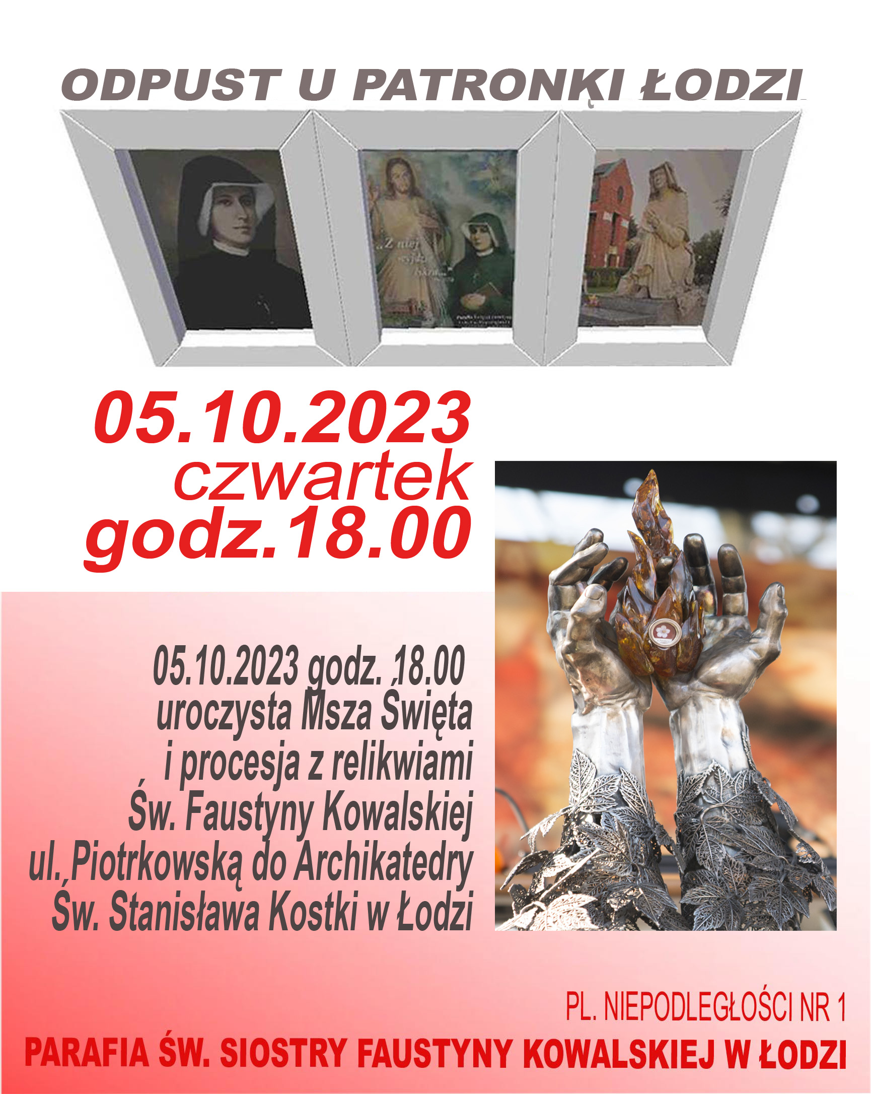 Posted On 4 października 2023 | Comments Closed | Posted under Bez kategoriiZapraszamy na uroczystości odpustowe parafii św. Faustyny